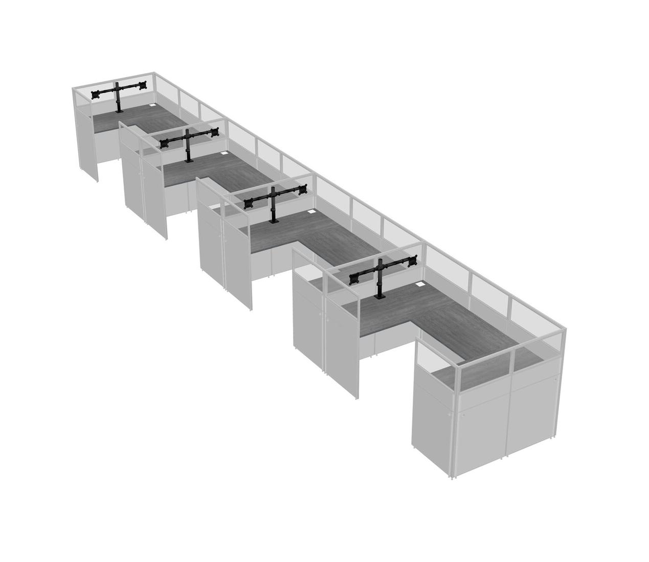 Grey U-shaped Panel System For 4 Person + Monitor Arm (double Arms) For 4 User(s)