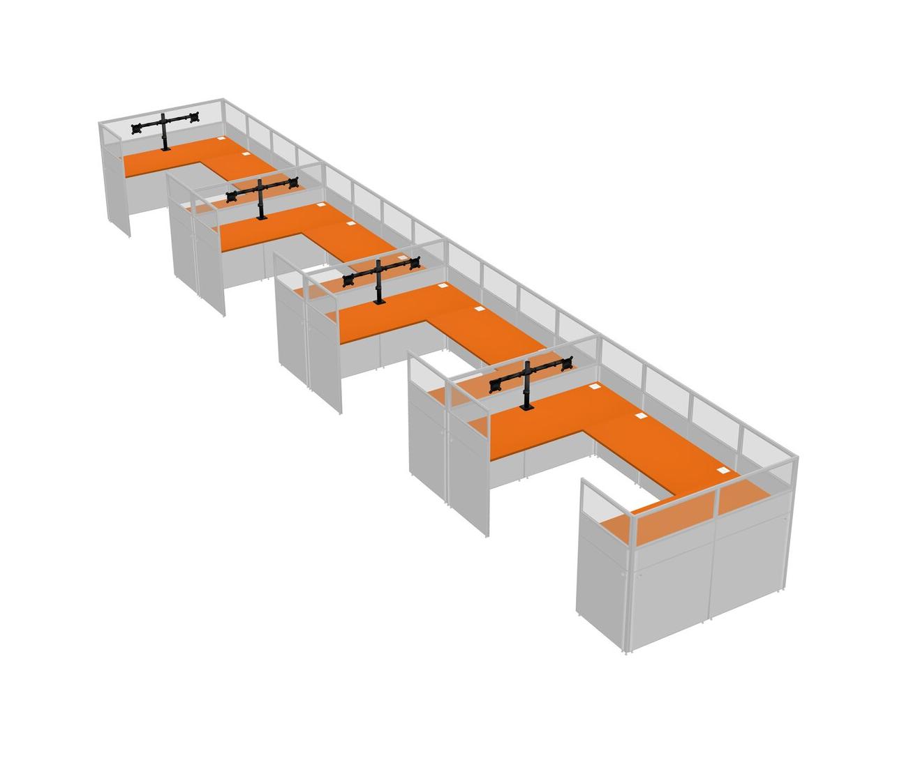 Orange U-shaped Panel System For 4 Person + Monitor Arm (double Arms) For 4 User(s)