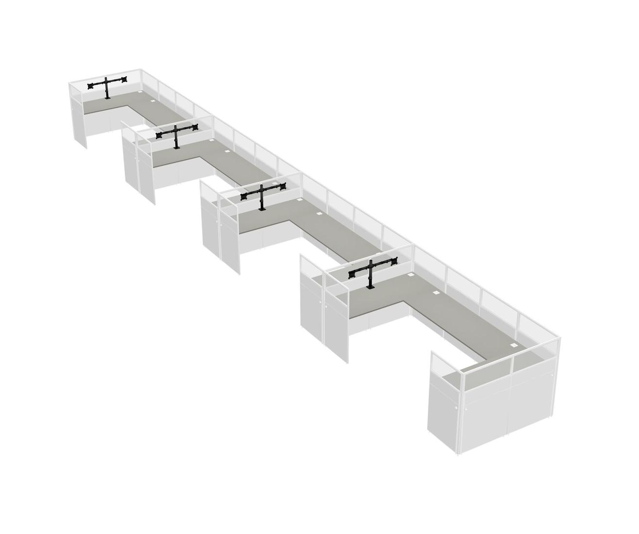 Grey Shadows U-shaped Panel System For 4 Person + Monitor Arm (double Arms) For 4 User(s)