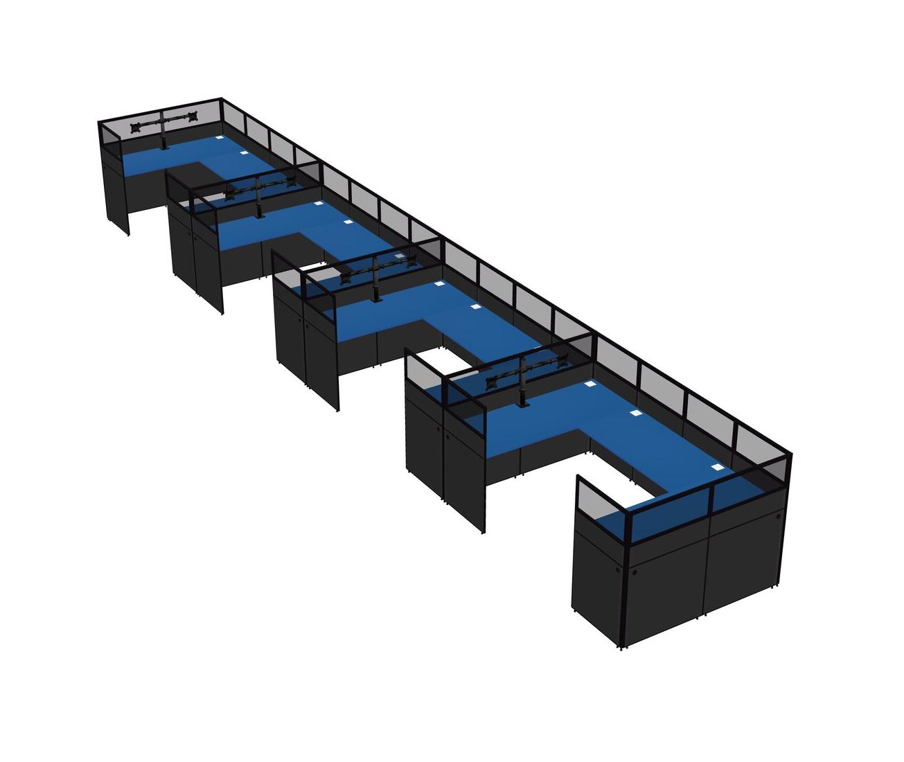 Prism Blue U-shaped Panel System For 4 Person + Monitor Arm (double Arms) For 4 User(s)