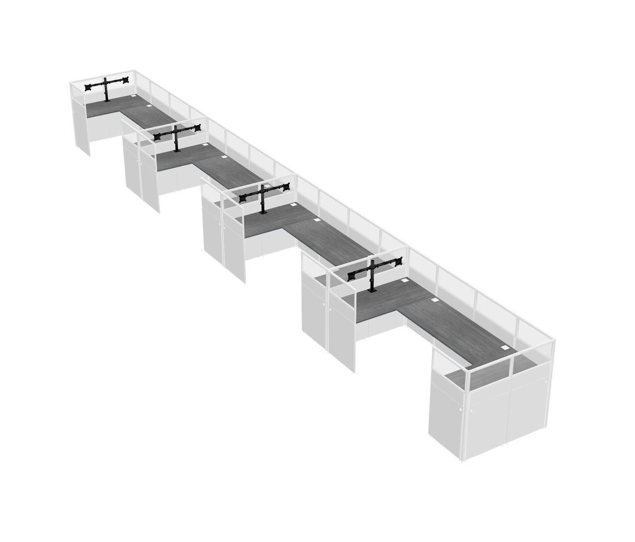 Grey U-shaped Panel System For 4 Person + Monitor Arm (double Arms) For 4 User(s)