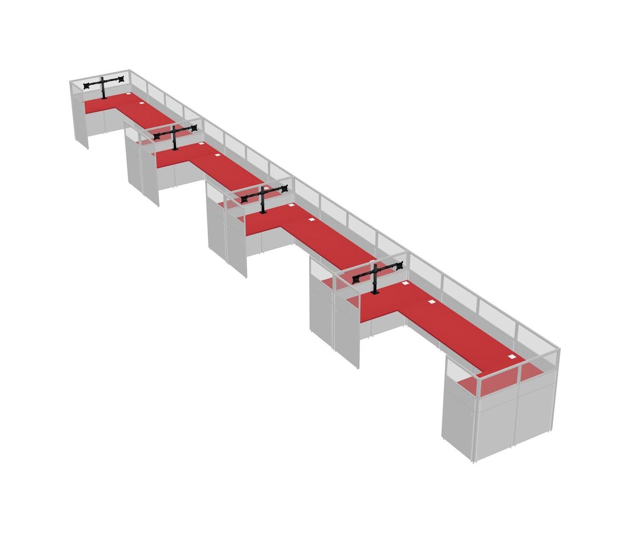 Prism Red U-shaped Panel System For 4 Person + Monitor Arm (double Arms) For 4 User(s)