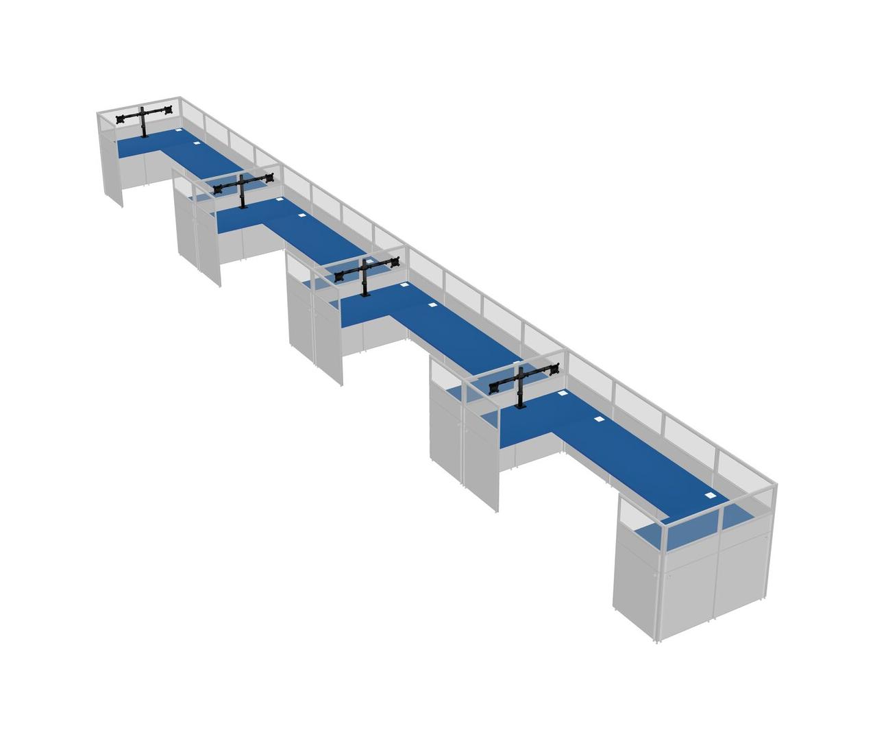 Prism Blue U-shaped Panel System For 4 Person + Monitor Arm (double Arms) For 4 User(s)