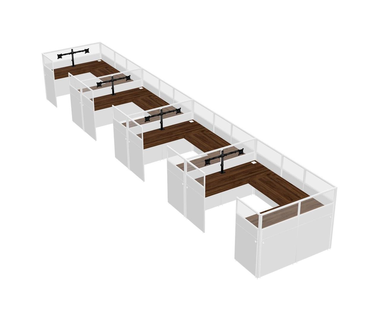 Columbia Walnut U-shaped Panel System For 4 Person + Monitor Arm (double Arms) For 4 User(s)