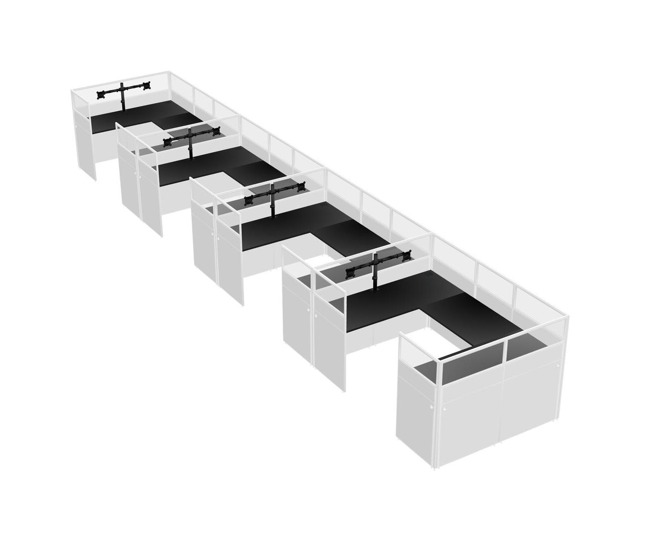 Black U-shaped Panel System For 4 Person + Monitor Arm (double Arms) For 4 User(s)