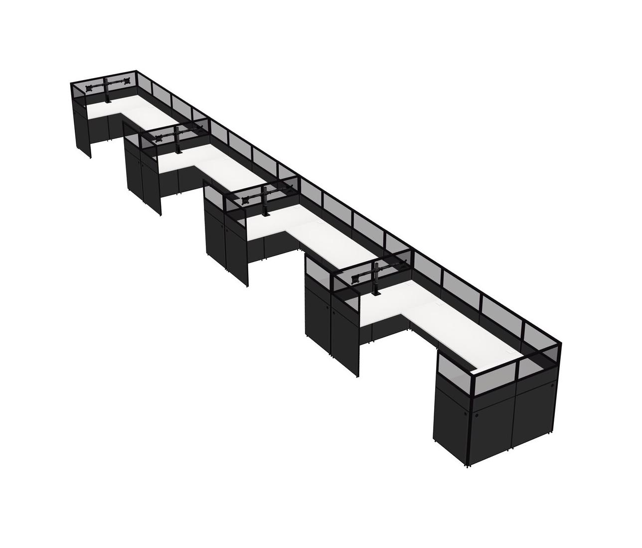White U-shaped Panel System For 4 Person + Monitor Arm (double Arms) For 4 User(s)