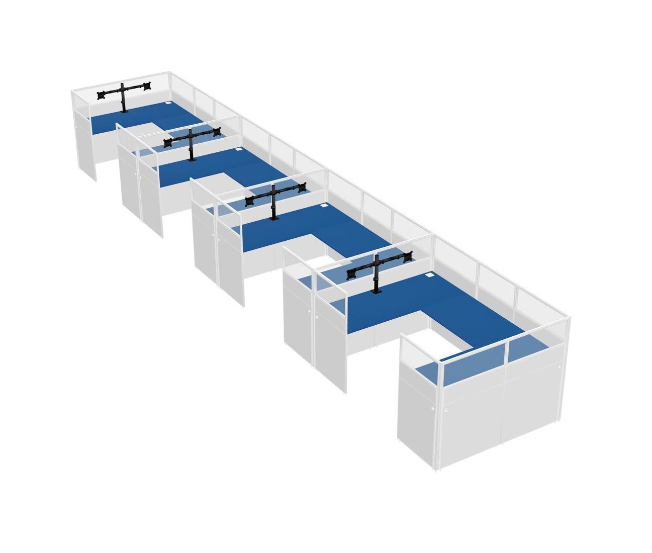 Prism Blue U-shaped Panel System For 4 Person + Monitor Arm (double Arms) For 4 User(s)