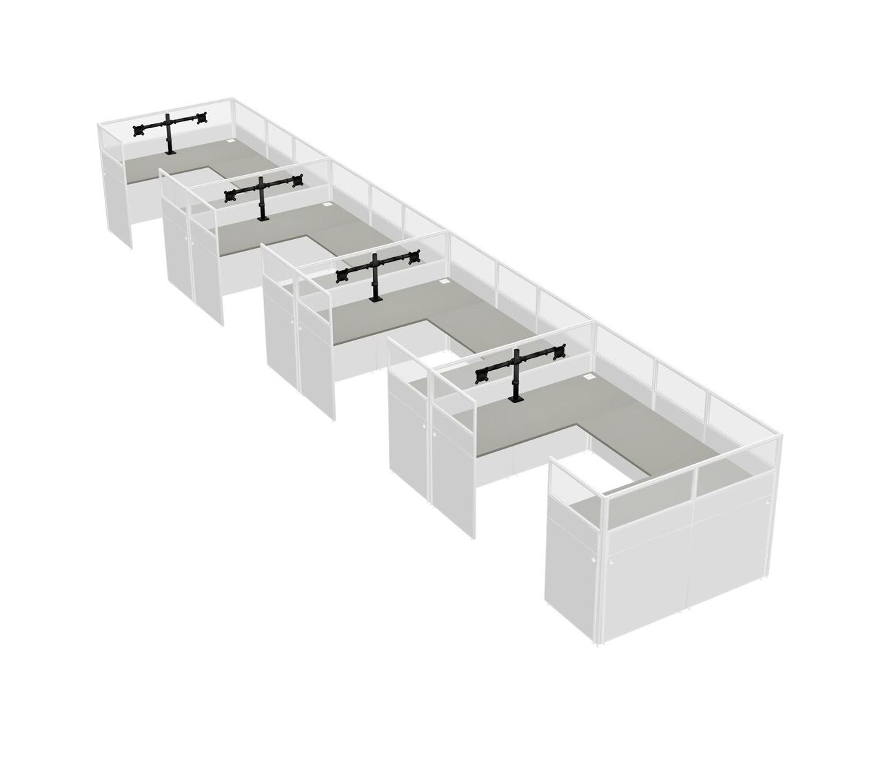 Grey Shadows U-shaped Panel System For 4 Person + Monitor Arm (double Arms) For 4 User(s)