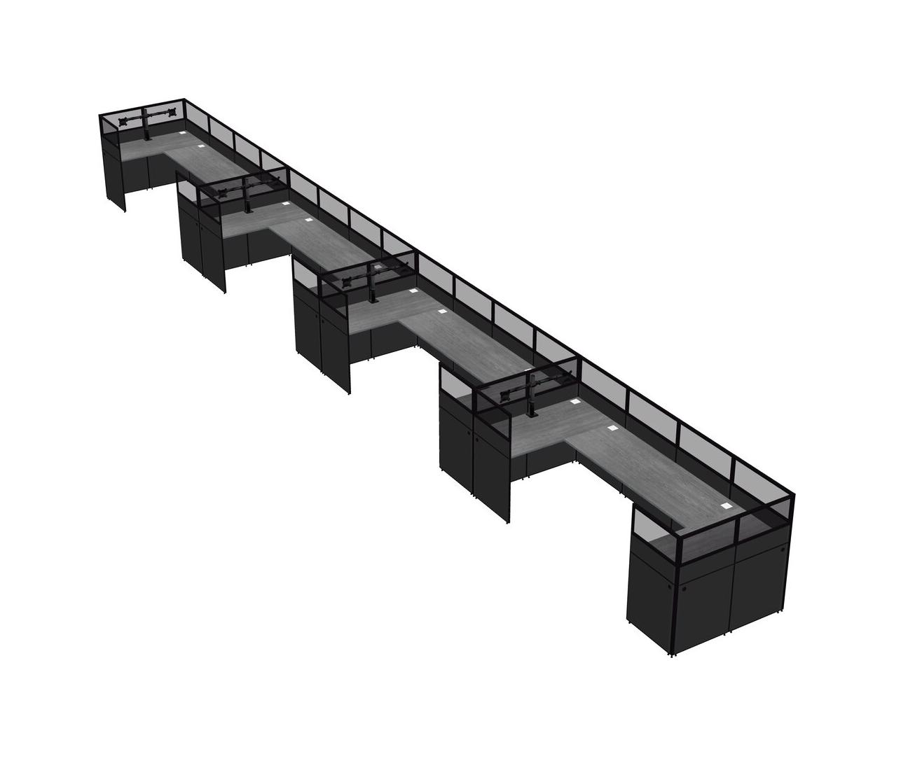 Grey U-shaped Panel System For 4 Person + Monitor Arm (double Arms) For 4 User(s)