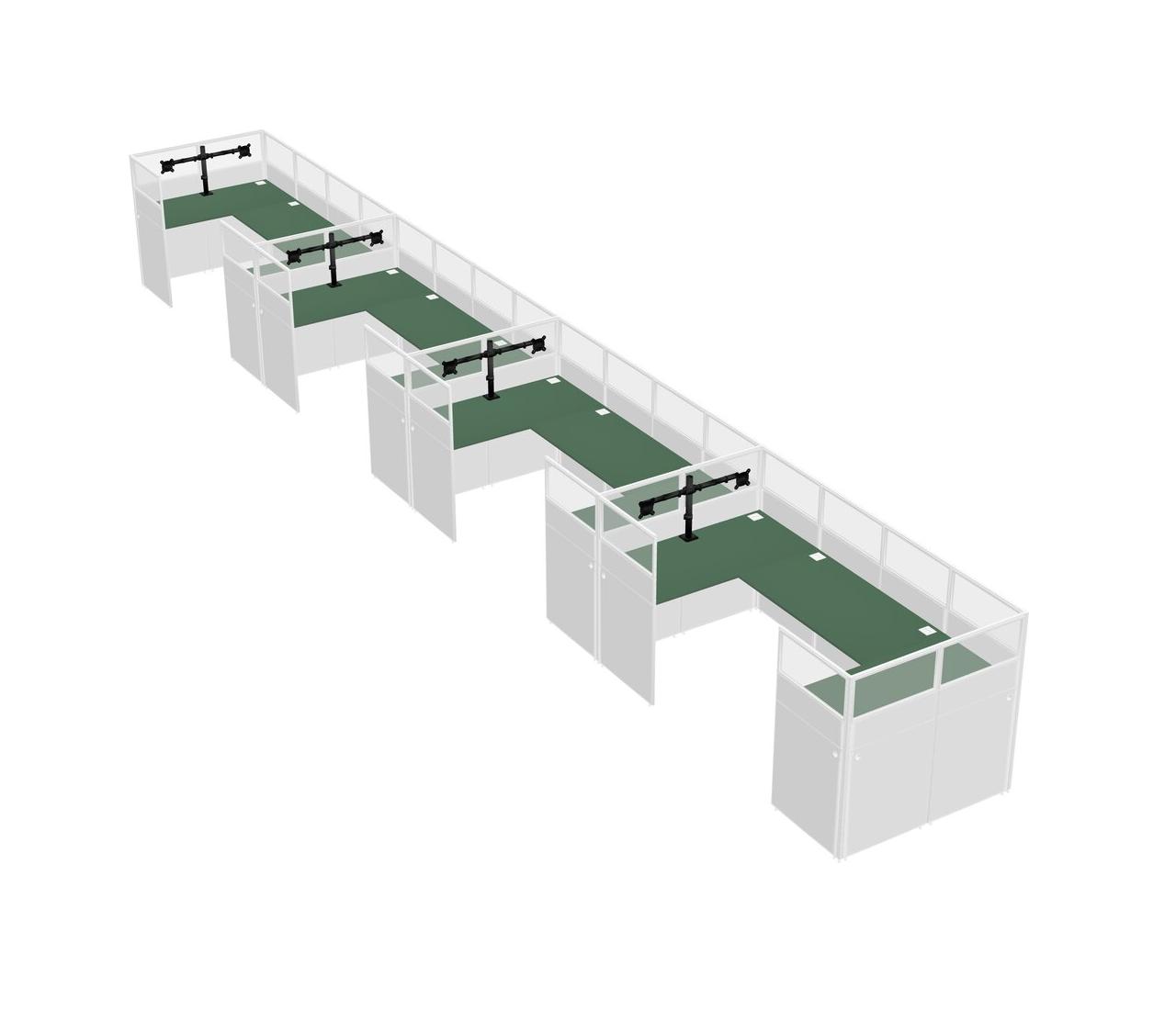 Green U-shaped Panel System For 4 Person + Monitor Arm (double Arms) For 4 User(s)