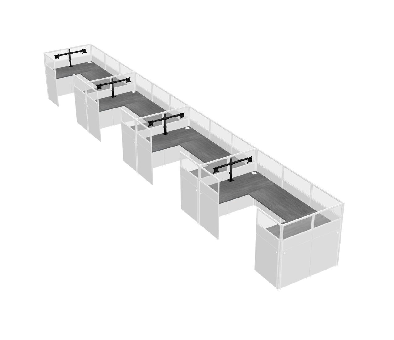 Grey U-shaped Panel System For 4 Person + Monitor Arm (double Arms) For 4 User(s)