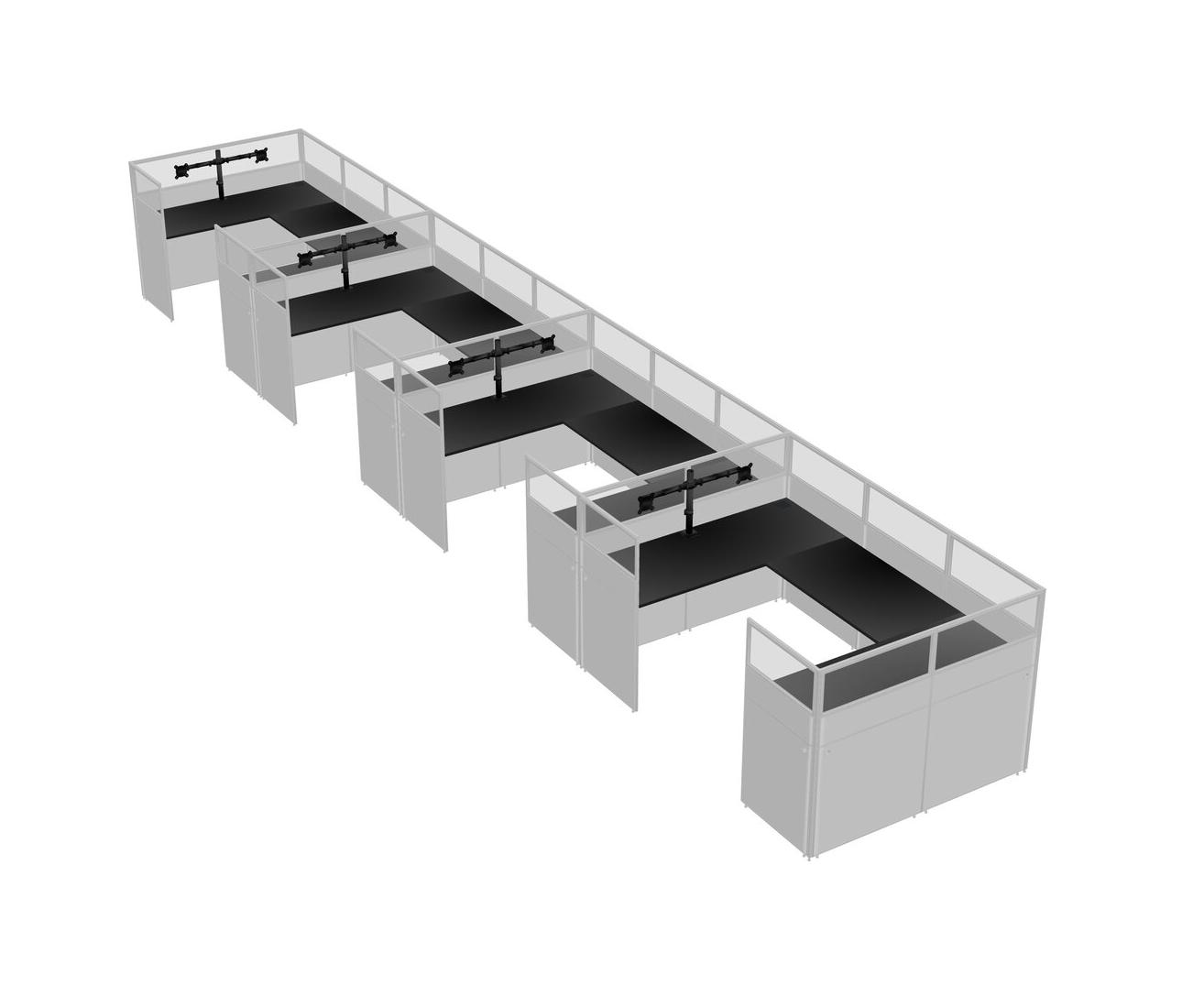 Black U-shaped Panel System For 4 Person + Monitor Arm (double Arms) For 4 User(s)