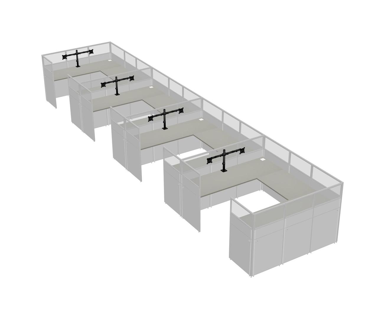 Grey Shadows U-shaped Panel System For 4 Person + Monitor Arm (double Arms) For 4 User(s)