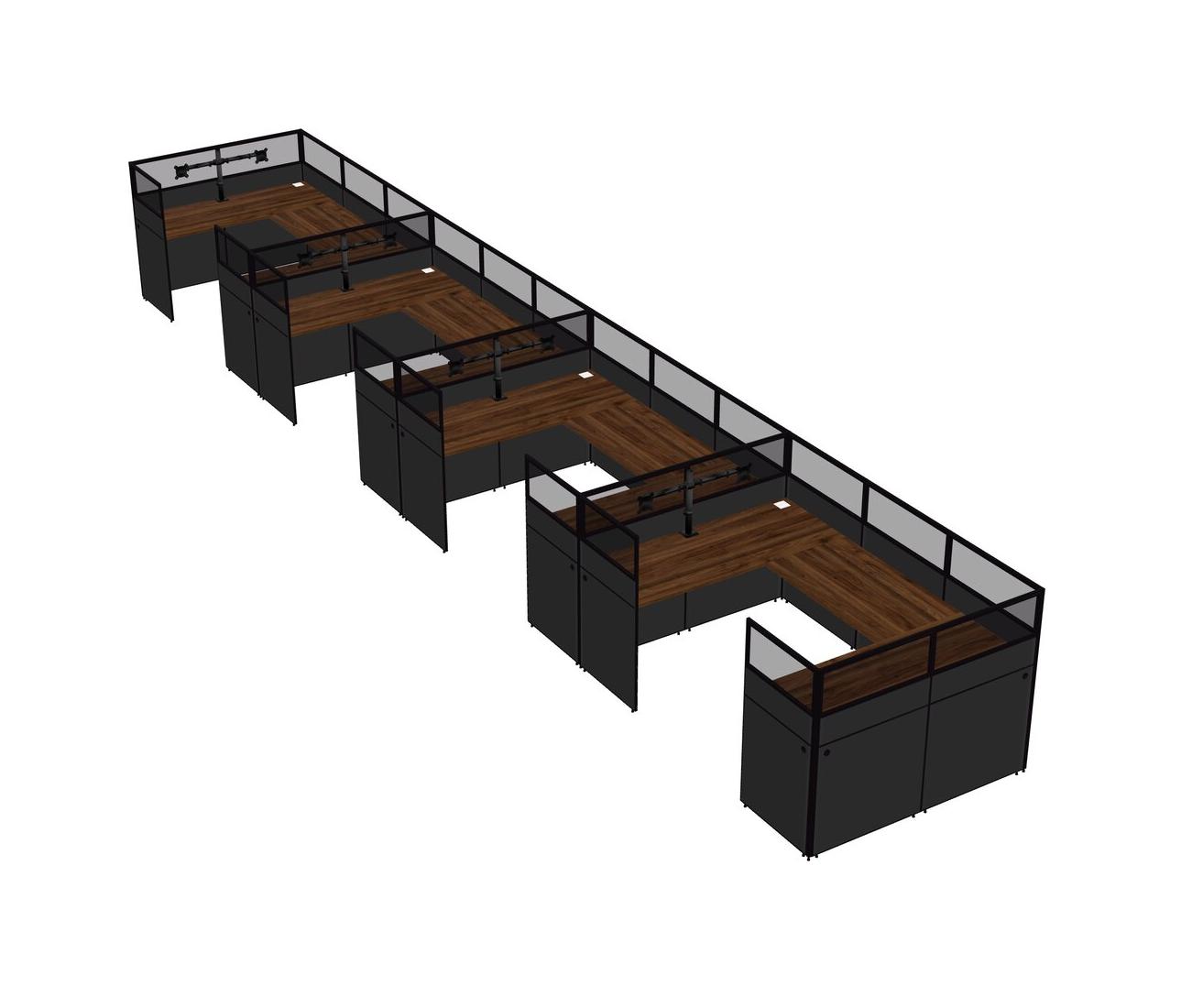 Columbia Walnut U-shaped Panel System For 4 Person + Monitor Arm (double Arms) For 4 User(s)