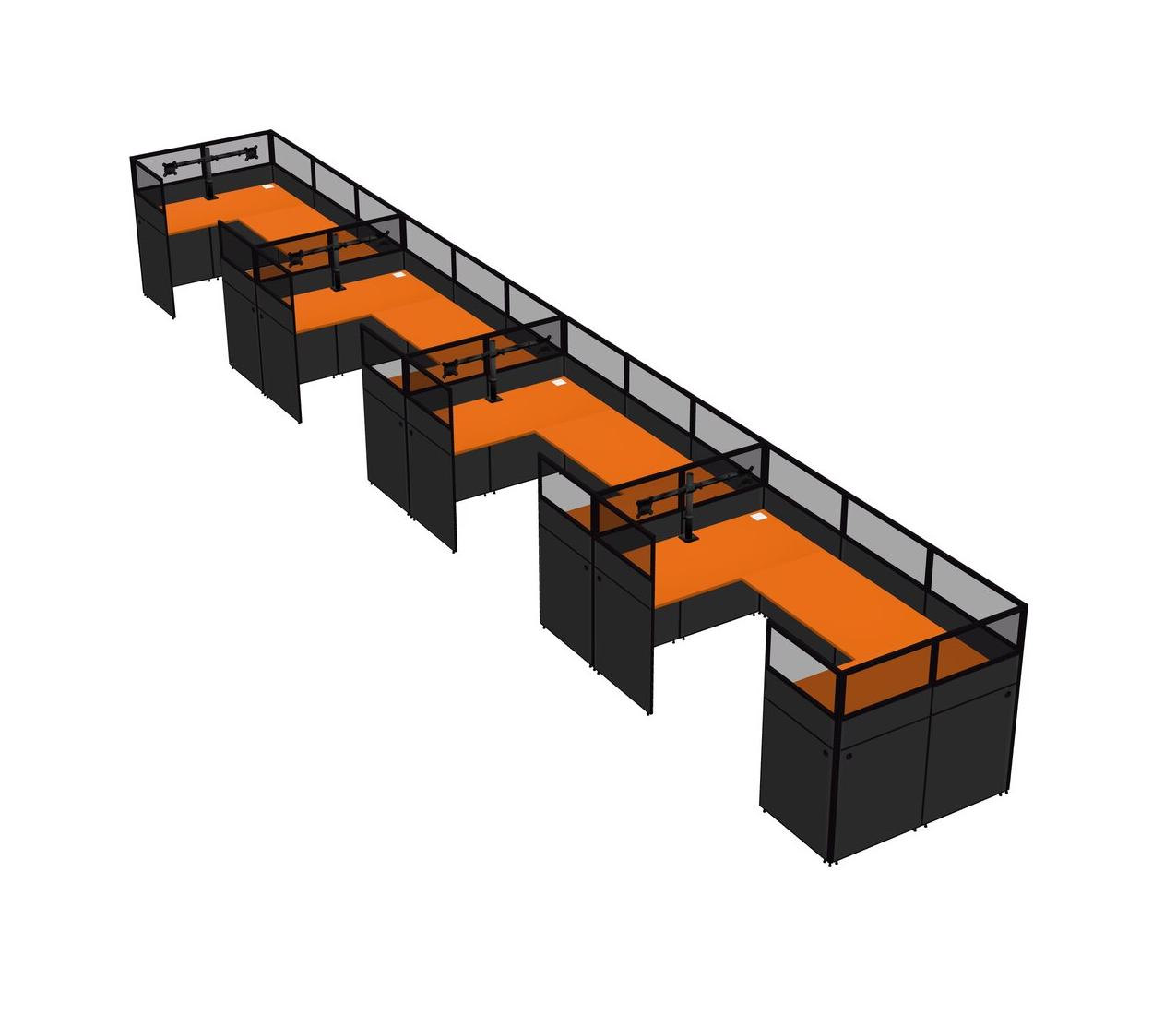 Orange U-shaped Panel System For 4 Person + Monitor Arm (double Arms) For 4 User(s)