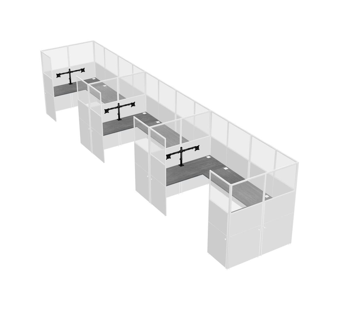 Grey U-shaped Panel System For 3 Person + Monitor Arm (double Arms) For 3 User(s)