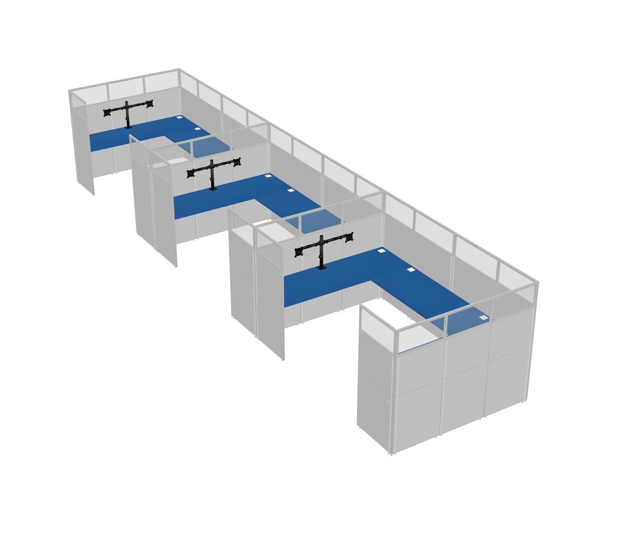 Prism Blue U-shaped Panel System For 3 Person + Monitor Arm (double Arms) For 3 User(s)