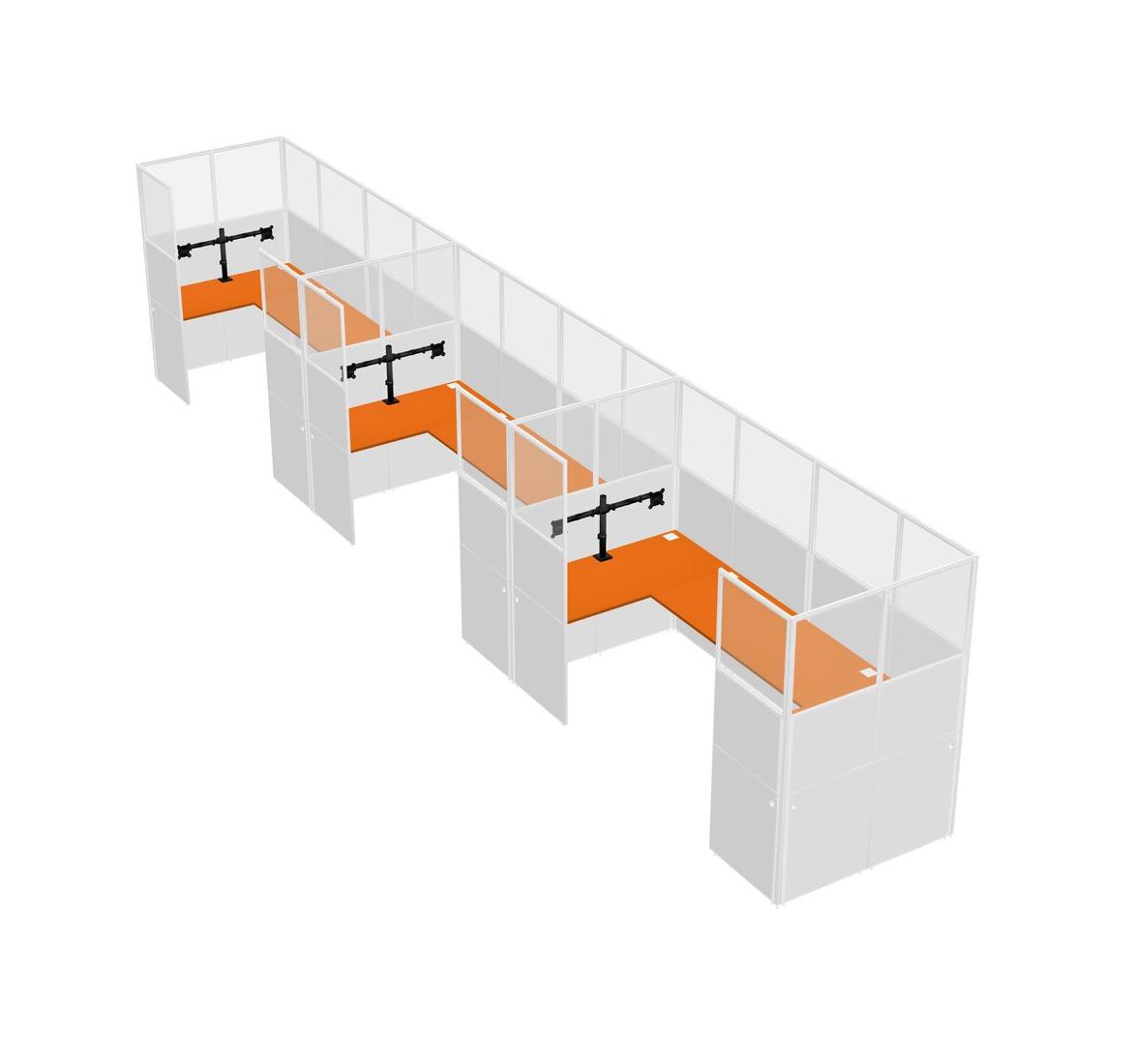 Orange U-shaped Panel System For 3 Person + Monitor Arm (double Arms) For 3 User(s)
