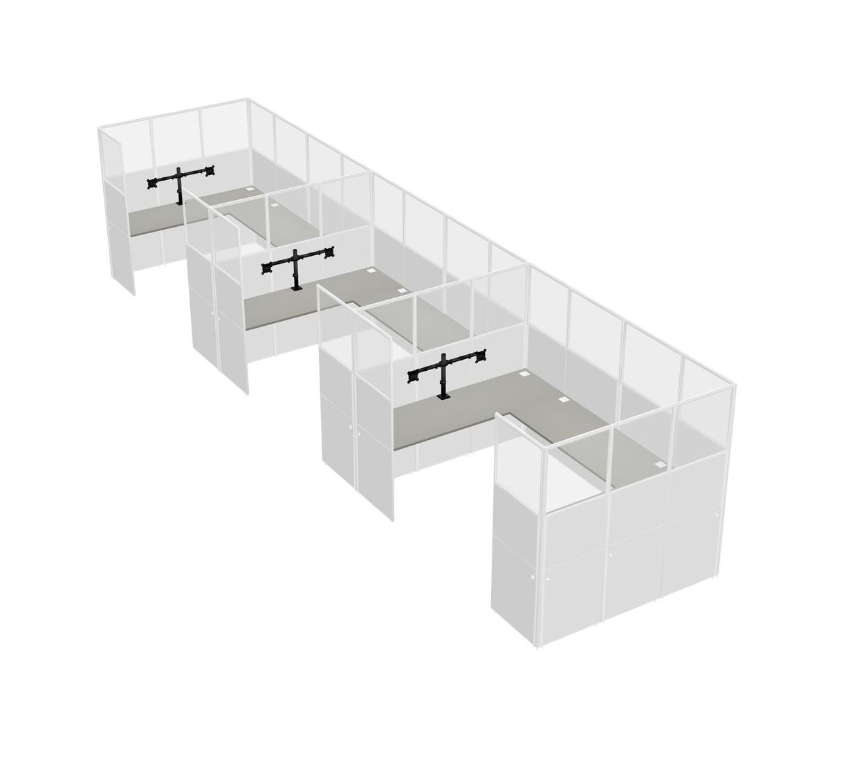 Grey Shadows U-shaped Panel System For 3 Person + Monitor Arm (double Arms) For 3 User(s)