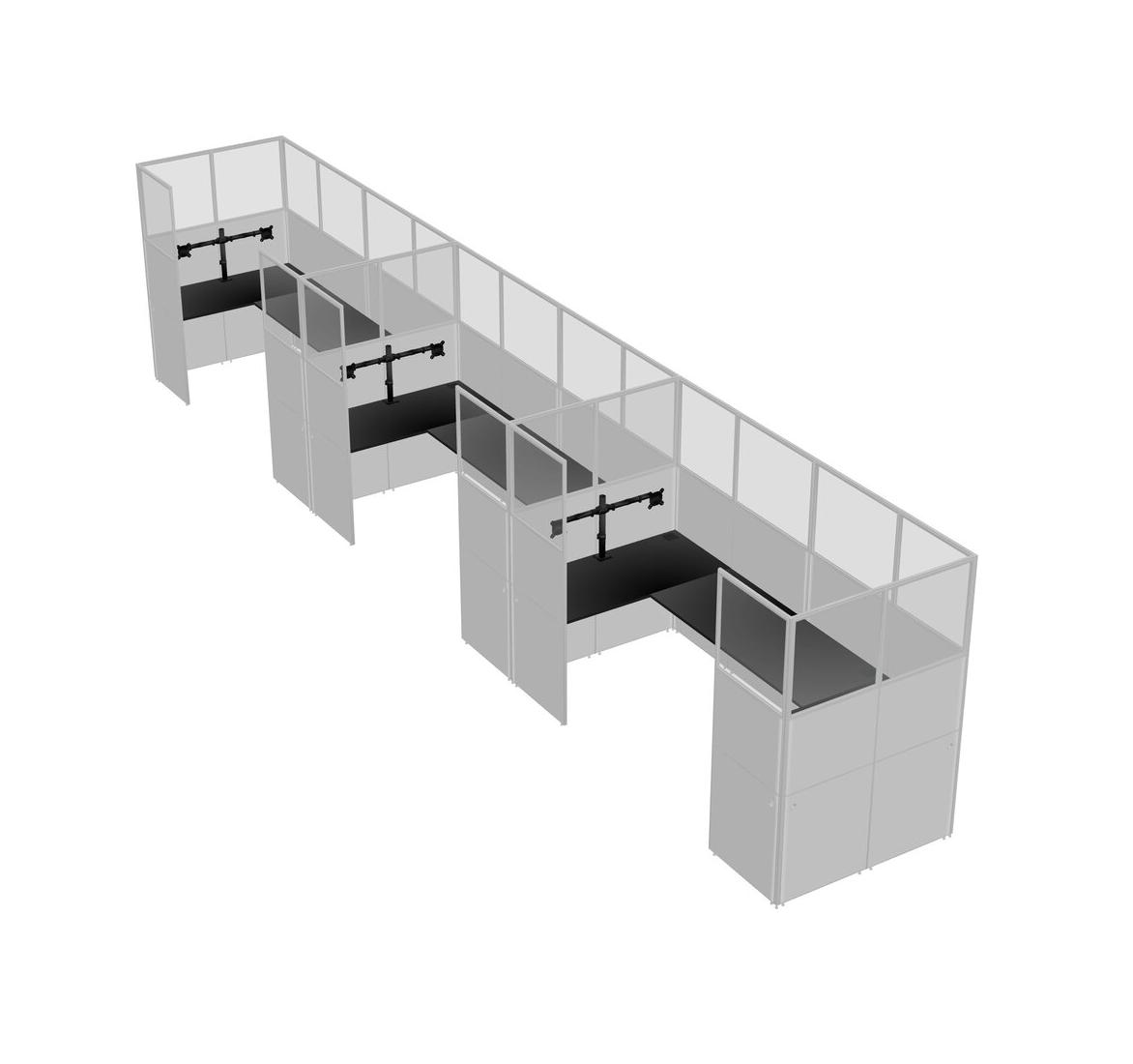 Black U-shaped Panel System For 3 Person + Monitor Arm (double Arms) For 3 User(s)