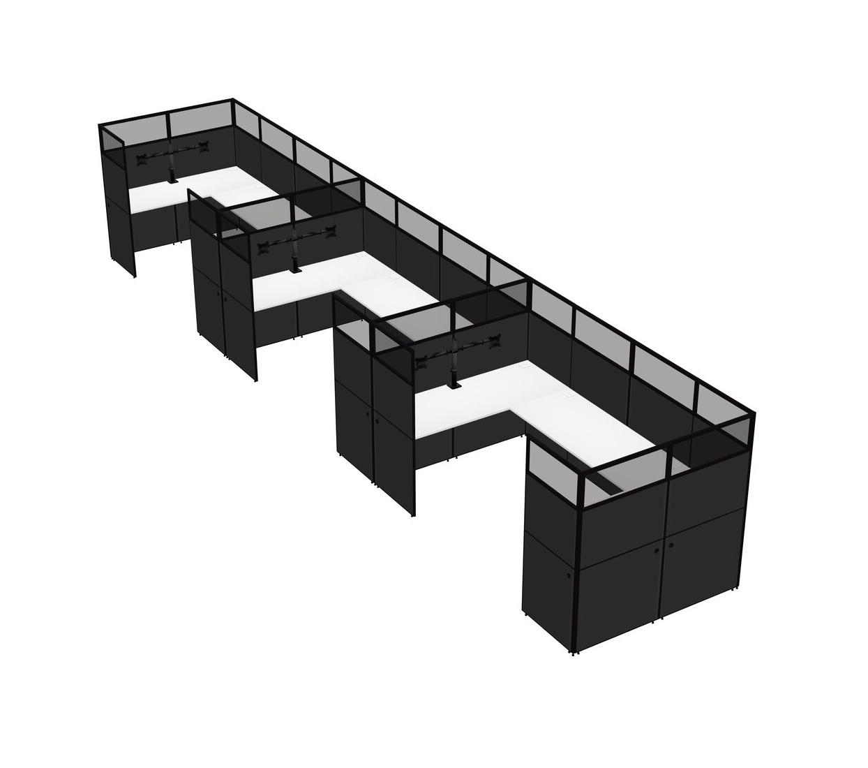 White U-shaped Panel System For 3 Person + Monitor Arm (double Arms) For 3 User(s)