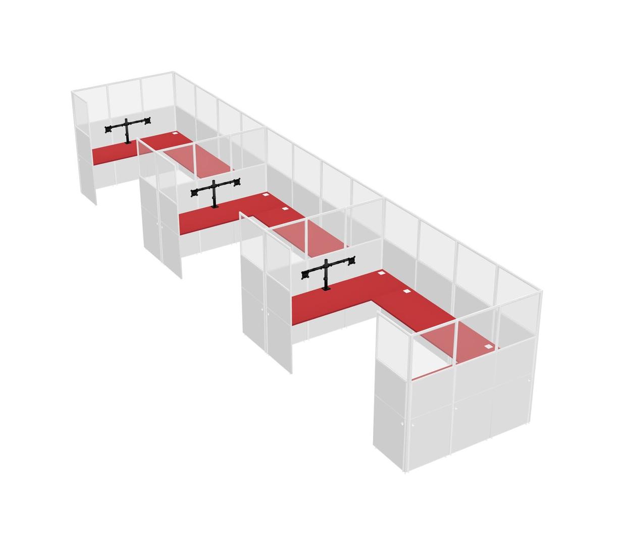 Prism Red U-shaped Panel System For 3 Person + Monitor Arm (double Arms) For 3 User(s)
