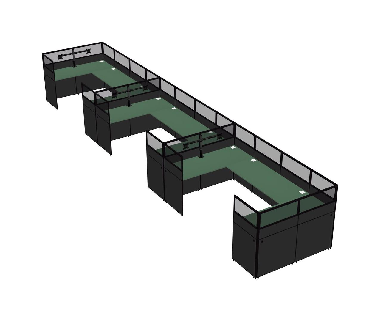 Green U-shaped Panel System For 3 Person + Monitor Arm (double Arms) For 3 User(s)
