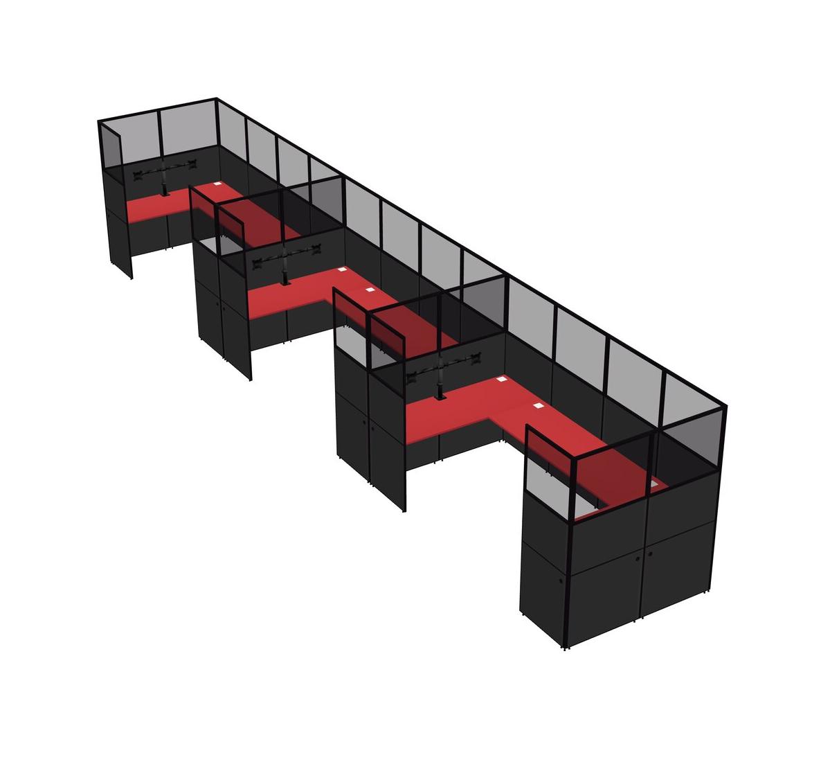 Prism Red U-shaped Panel System For 3 Person + Monitor Arm (double Arms) For 3 User(s)