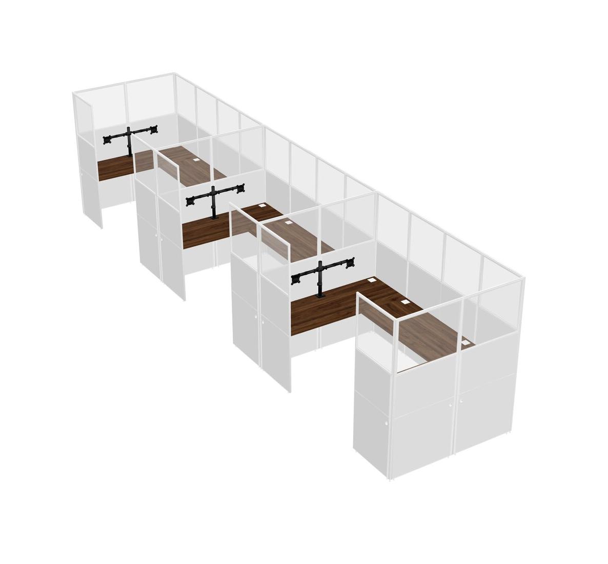Columbia Walnut U-shaped Panel System For 3 Person + Monitor Arm (double Arms) For 3 User(s)