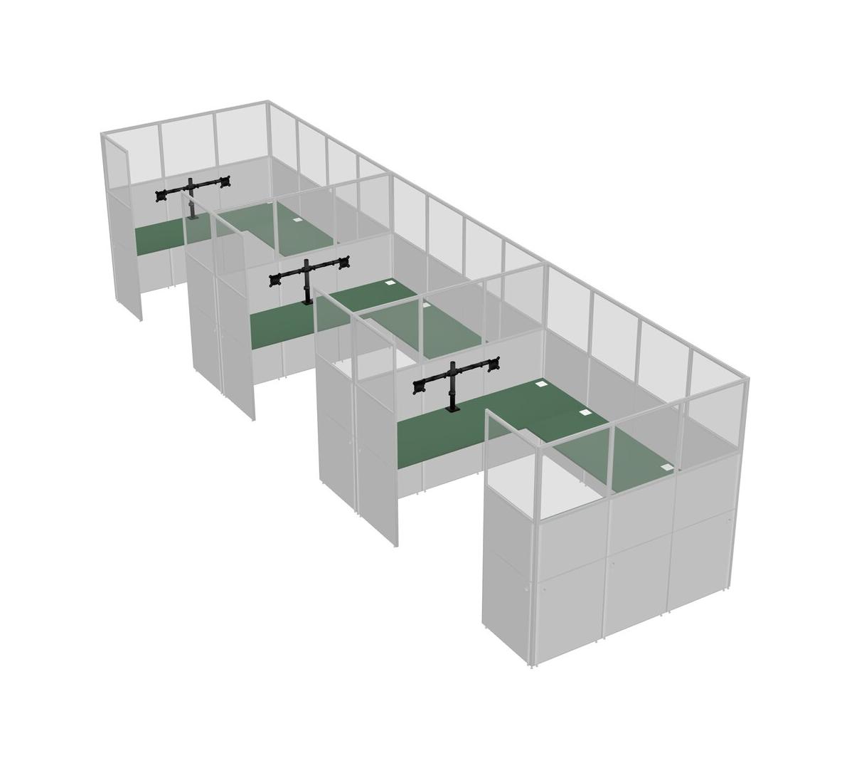 Green U-shaped Panel System For 3 Person + Monitor Arm (double Arms) For 3 User(s)