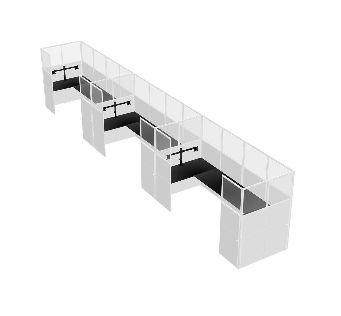 Black U-shaped Panel System For 3 Person + Monitor Arm (double Arms) For 3 User(s)