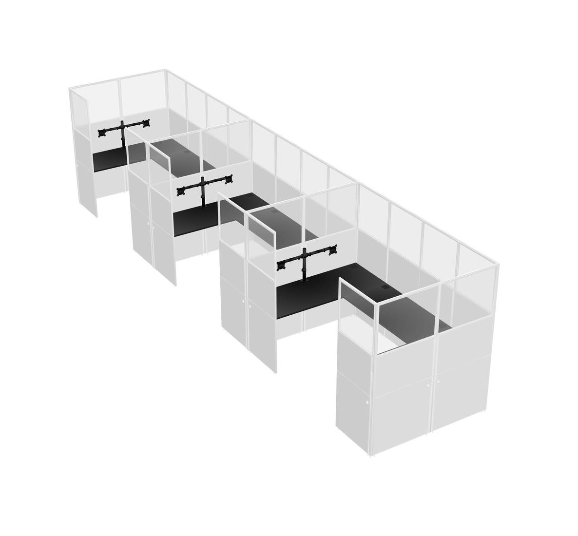 Black U-shaped Panel System For 3 Person + Monitor Arm (double Arms) For 3 User(s)