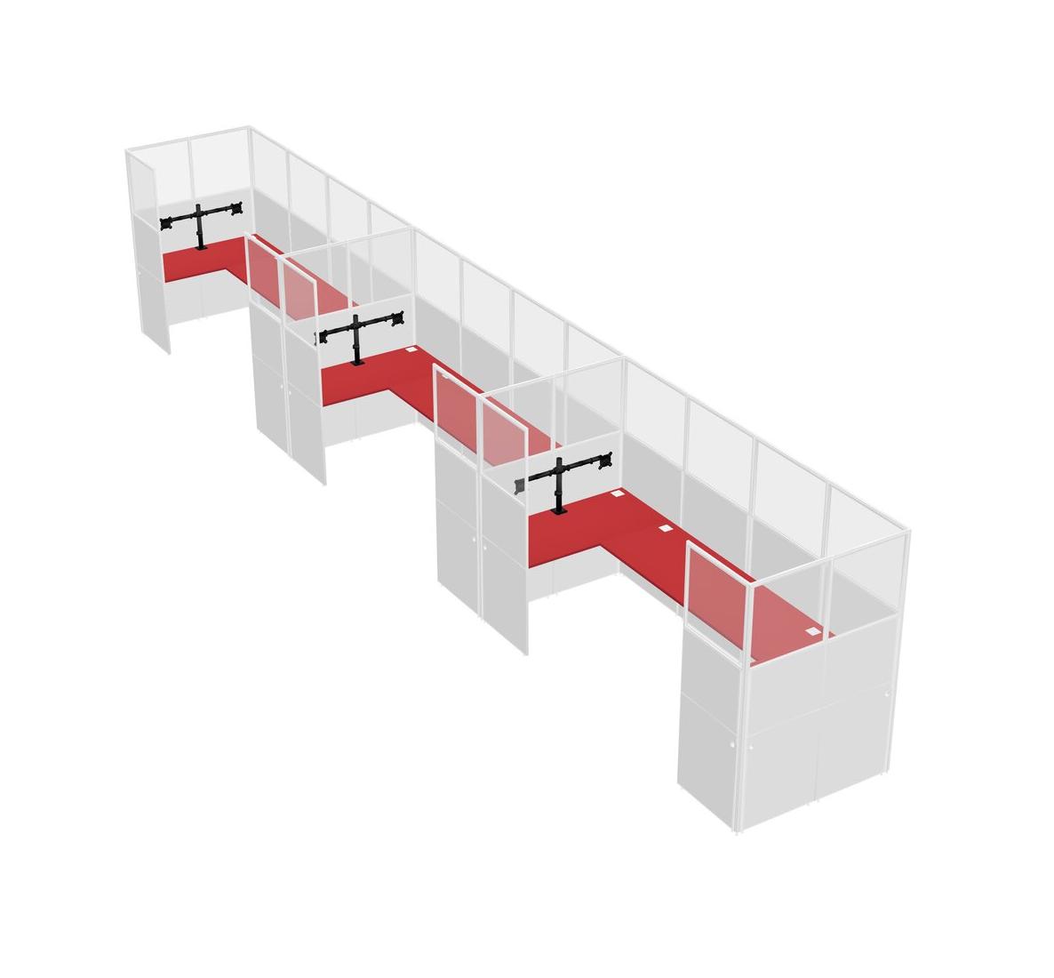Prism Red U-shaped Panel System For 3 Person + Monitor Arm (double Arms) For 3 User(s)