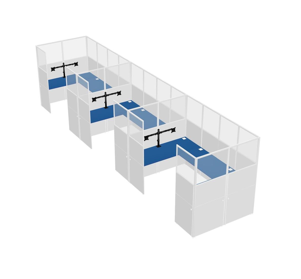 Prism Blue U-shaped Panel System For 3 Person + Monitor Arm (double Arms) For 3 User(s)