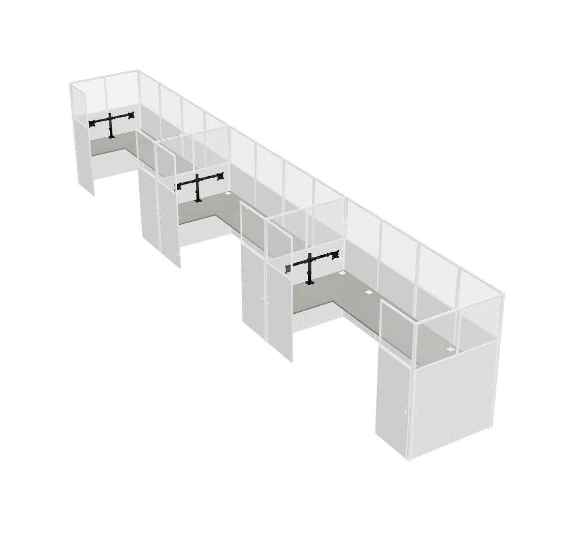 Grey Shadows U-shaped Panel System For 3 Person + Monitor Arm (double Arms) For 3 User(s)