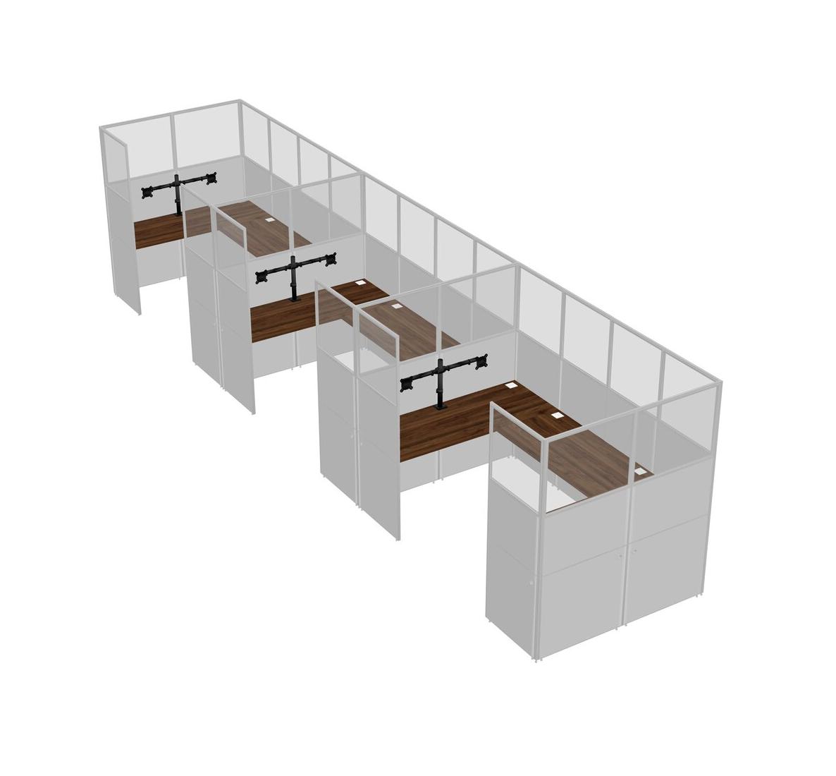Columbia Walnut U-shaped Panel System For 3 Person + Monitor Arm (double Arms) For 3 User(s)
