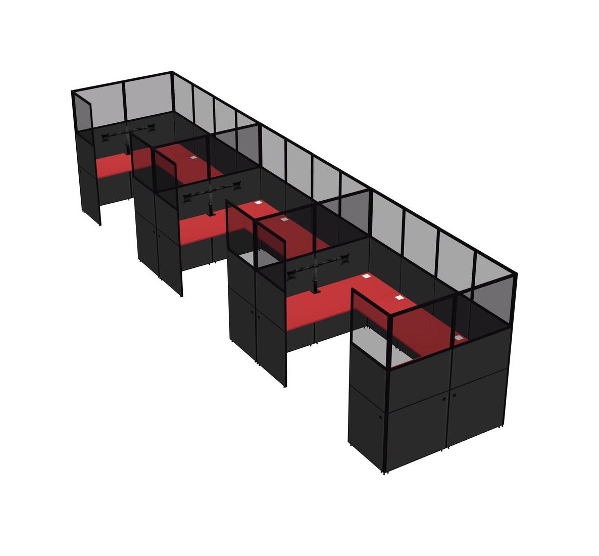 Prism Red U-shaped Panel System For 3 Person + Monitor Arm (double Arms) For 3 User(s)