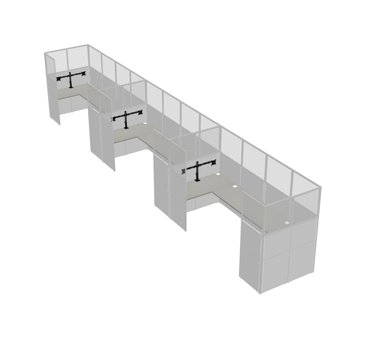 Grey Shadows U-shaped Panel System For 3 Person + Monitor Arm (double Arms) For 3 User(s)