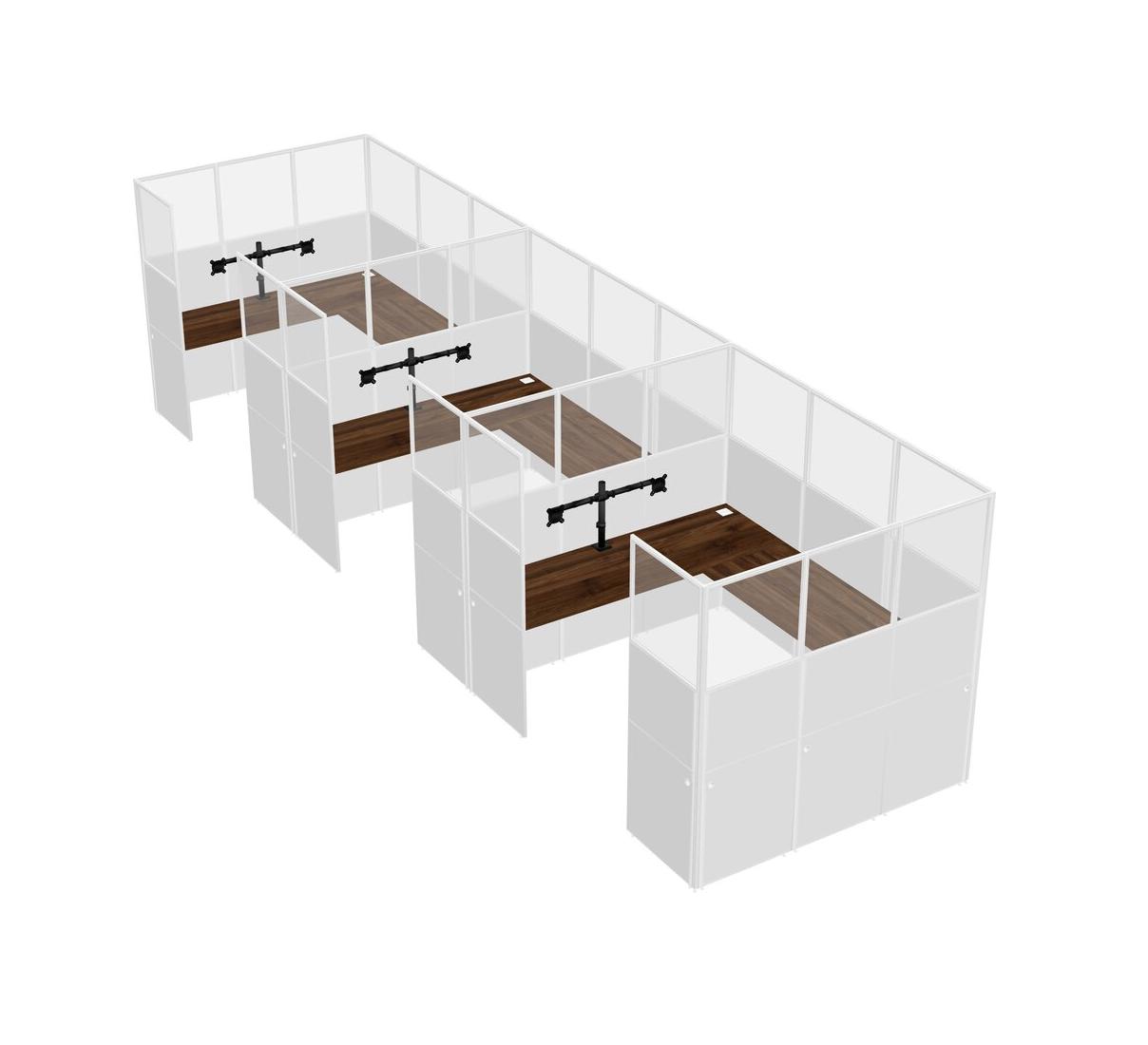 Columbia Walnut U-shaped Panel System For 3 Person + Monitor Arm (double Arms) For 3 User(s)