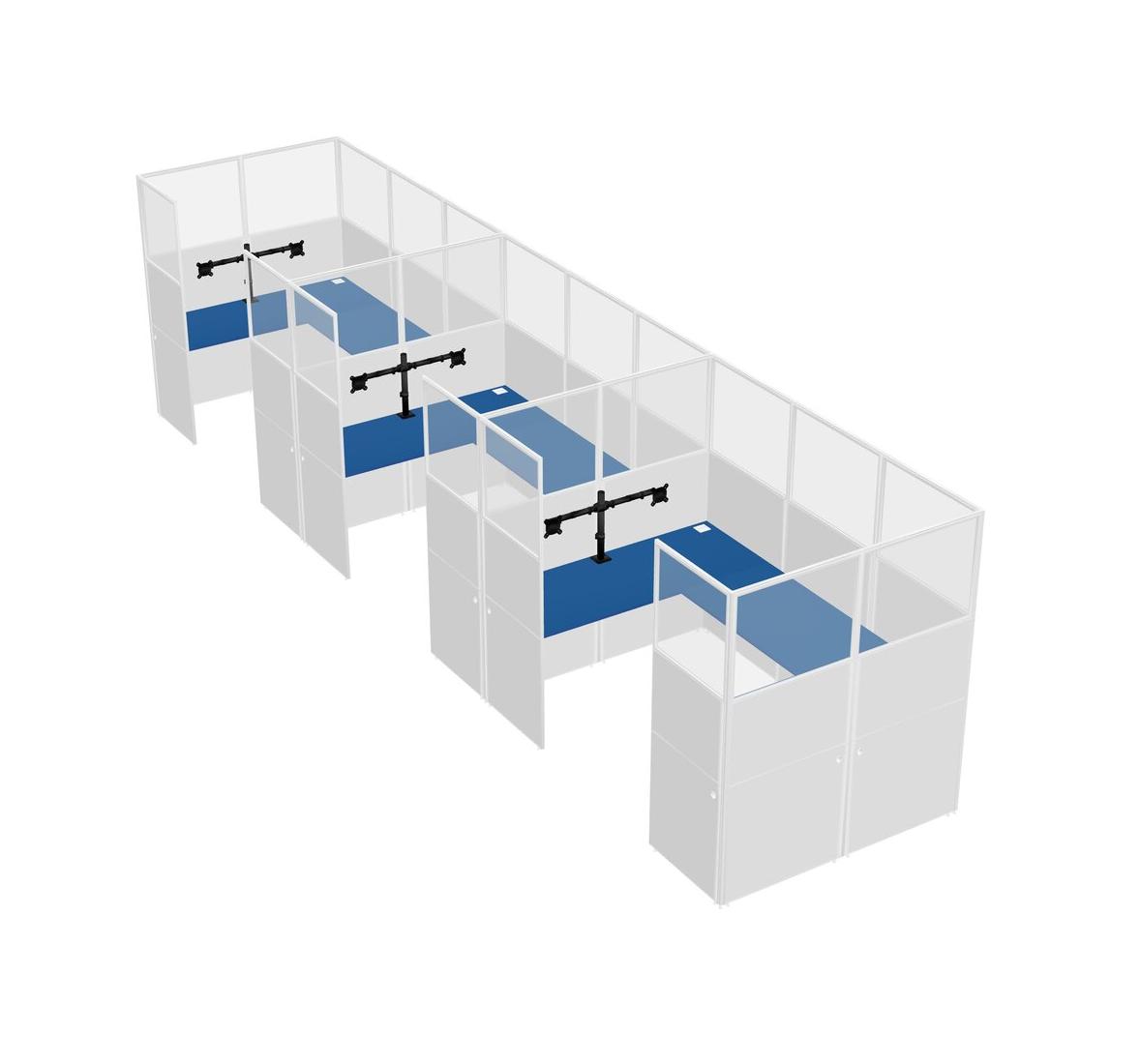 Prism Blue U-shaped Panel System For 3 Person + Monitor Arm (double Arms) For 3 User(s)