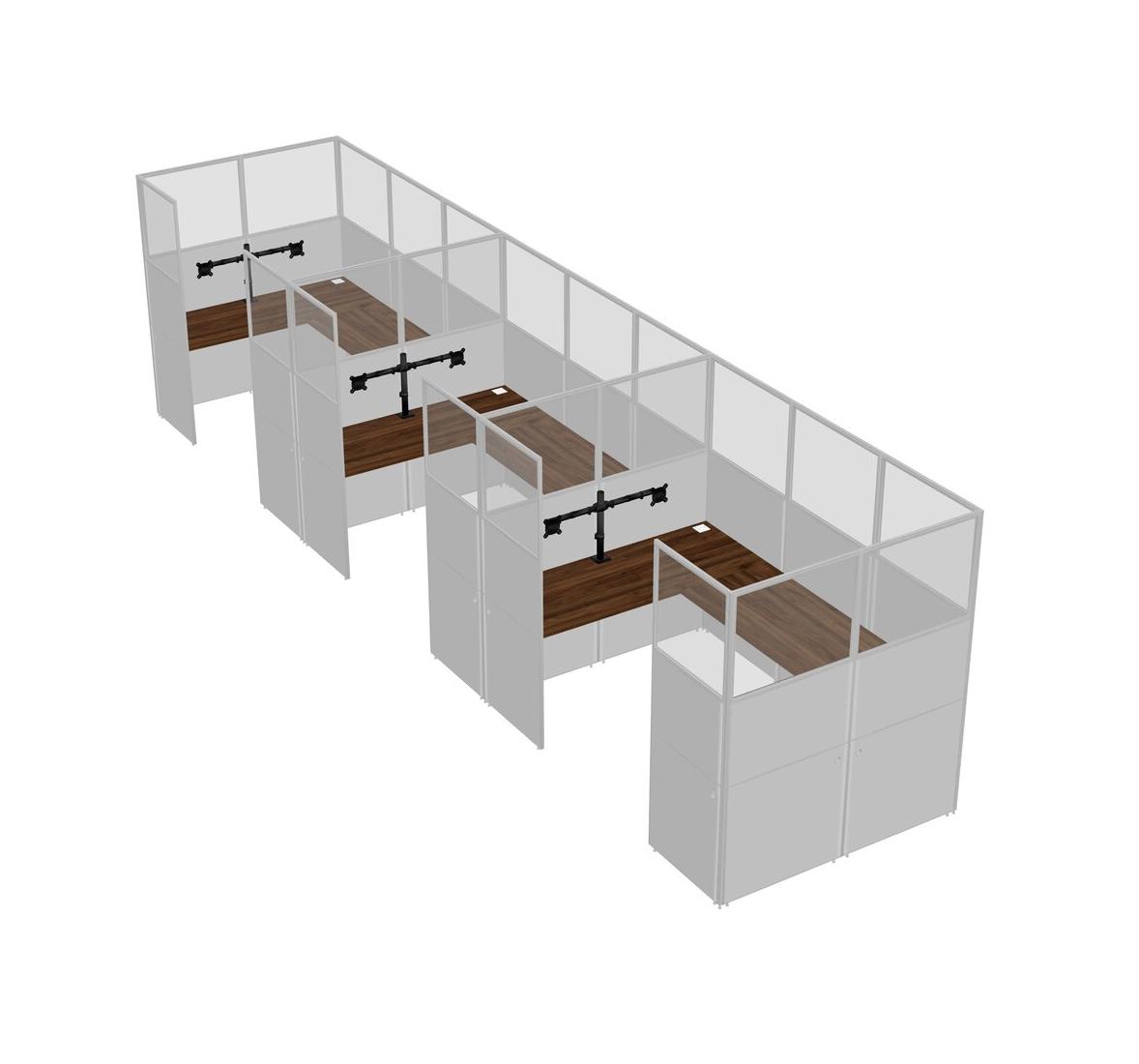 Columbia Walnut U-shaped Panel System For 3 Person + Monitor Arm (double Arms) For 3 User(s)