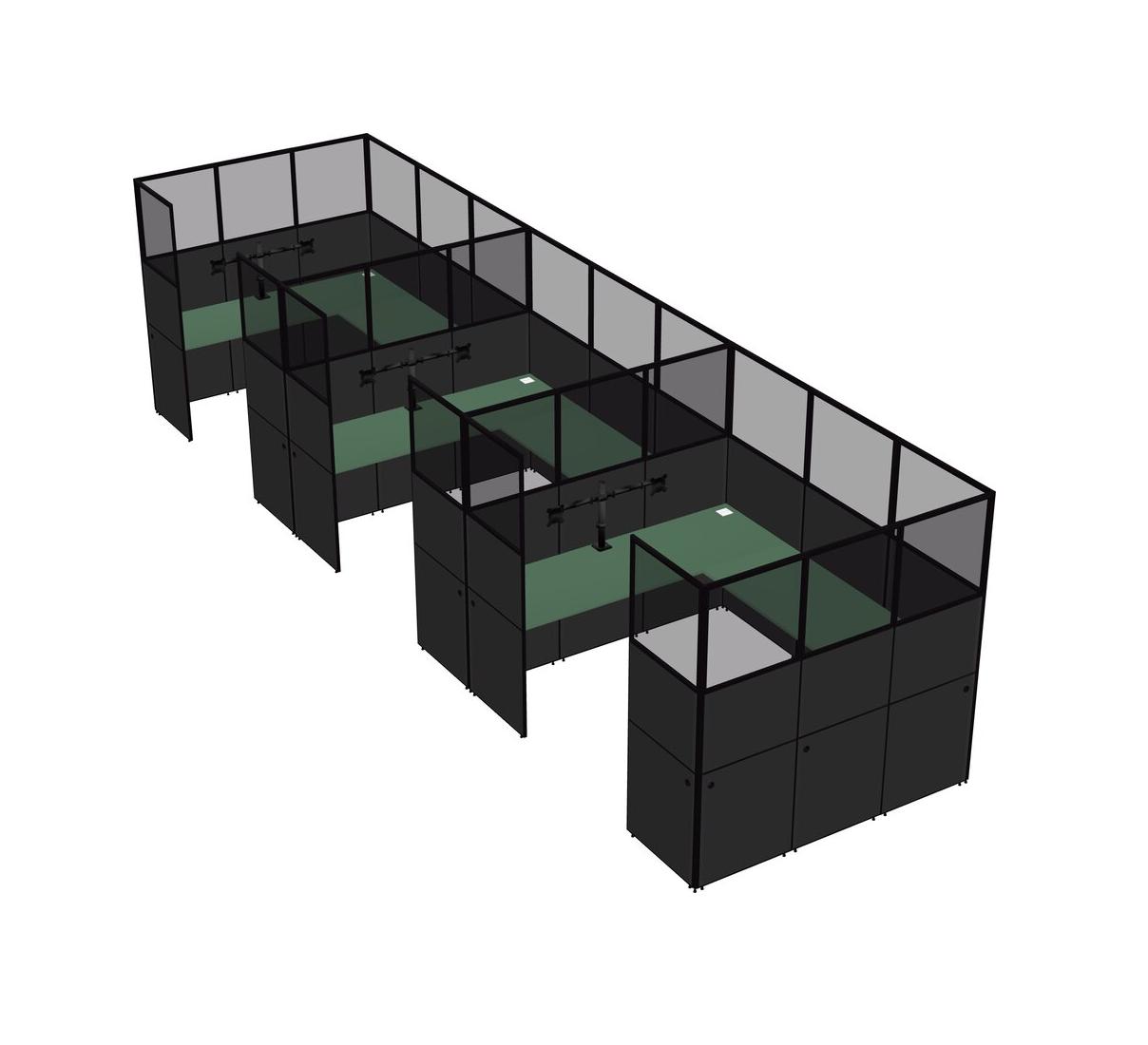 Green U-shaped Panel System For 3 Person + Monitor Arm (double Arms) For 3 User(s)