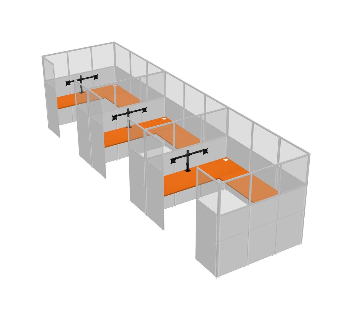 Orange U-shaped Panel System For 3 Person + Monitor Arm (double Arms) For 3 User(s)