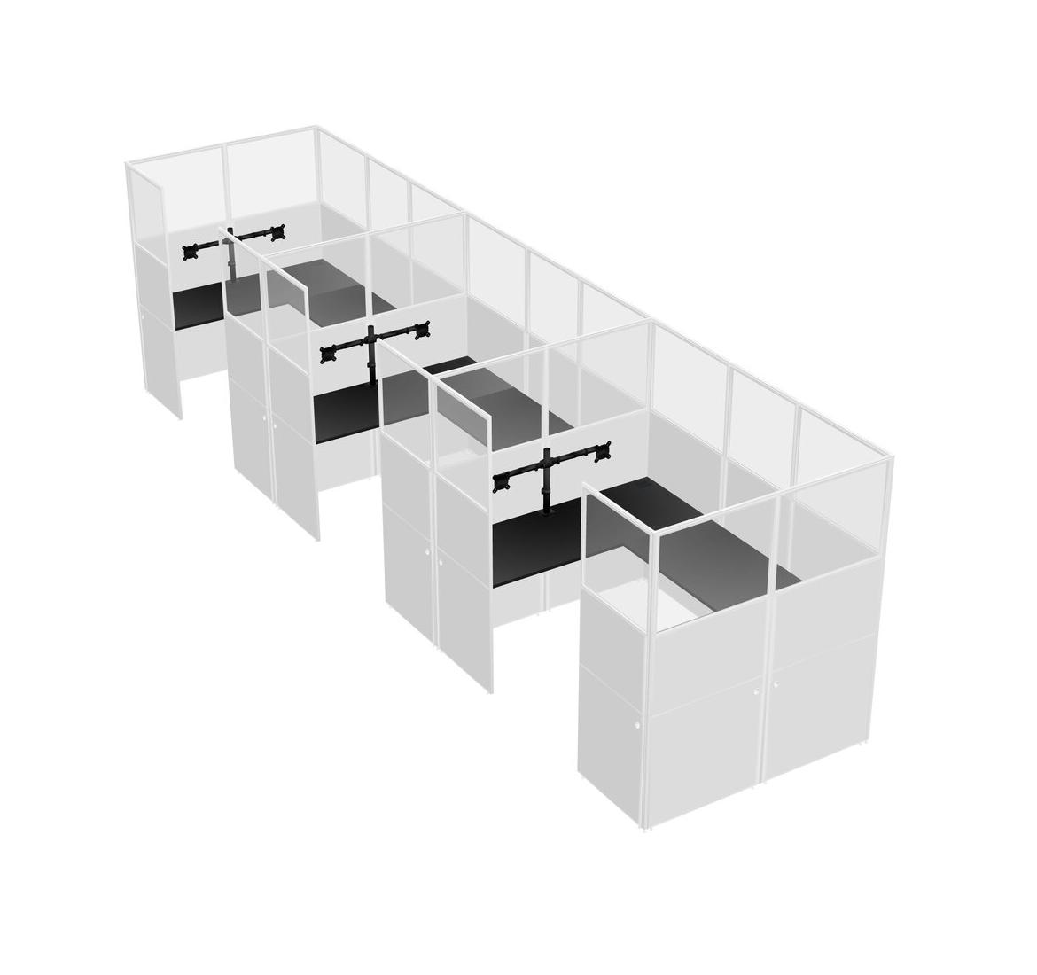 Black U-shaped Panel System For 3 Person + Monitor Arm (double Arms) For 3 User(s)
