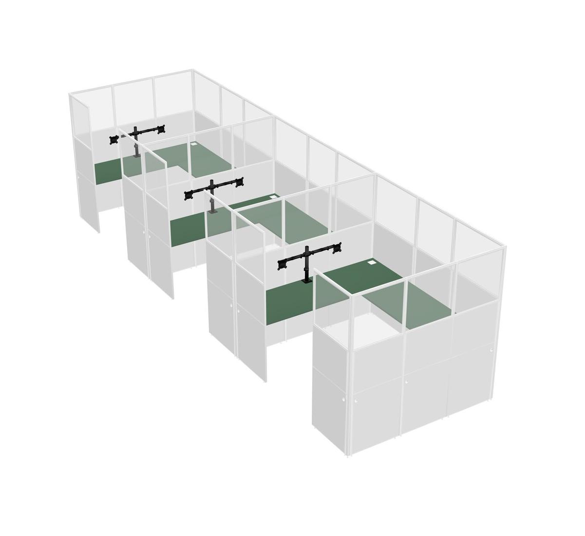 Green U-shaped Panel System For 3 Person + Monitor Arm (double Arms) For 3 User(s)