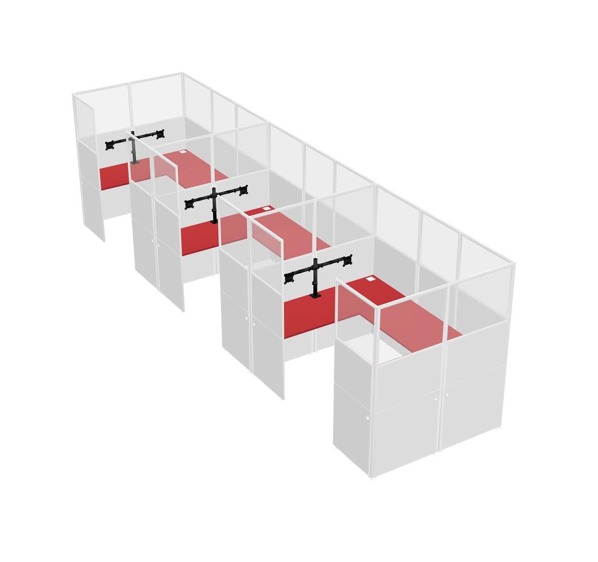 Prism Red U-shaped Panel System For 3 Person + Monitor Arm (double Arms) For 3 User(s)