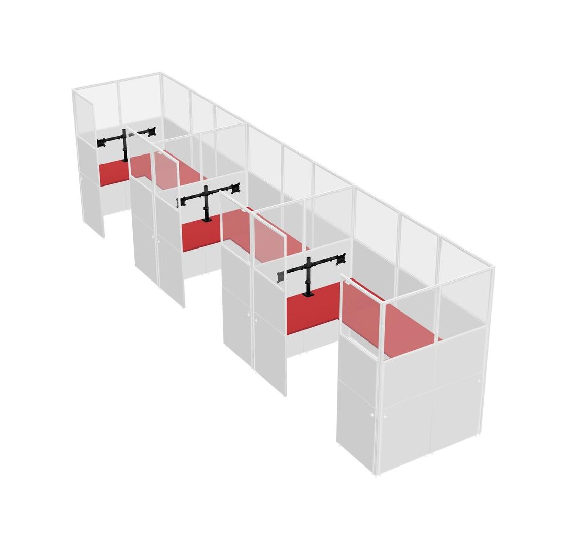 Prism Red U-shaped Panel System For 3 Person + Monitor Arm (double Arms) For 3 User(s)
