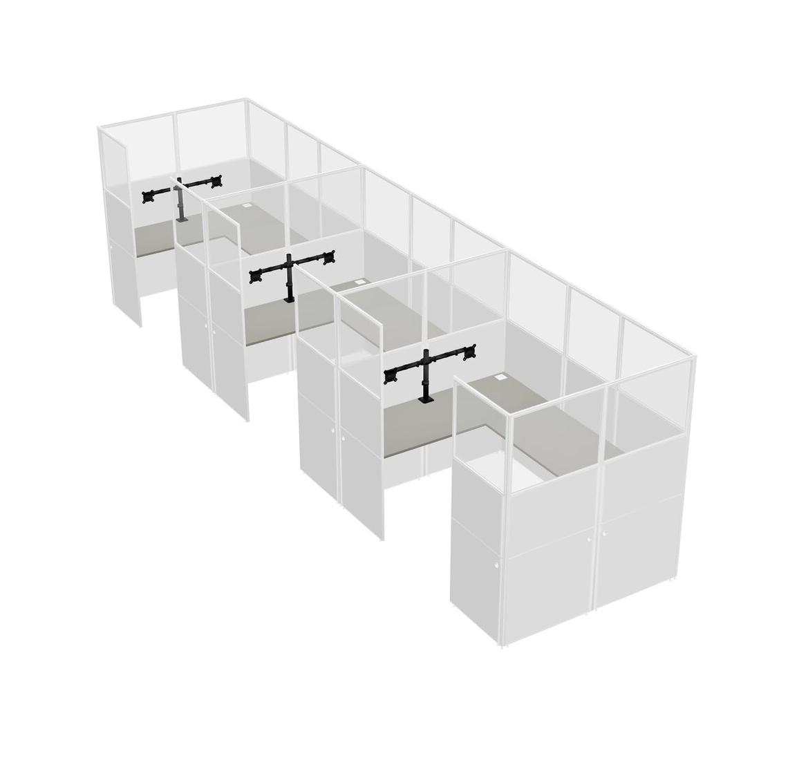 Grey Shadows U-shaped Panel System For 3 Person + Monitor Arm (double Arms) For 3 User(s)