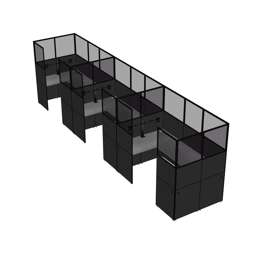 Grey U-shaped Panel System For 3 Person + Monitor Arm (double Arms) For 3 User(s)