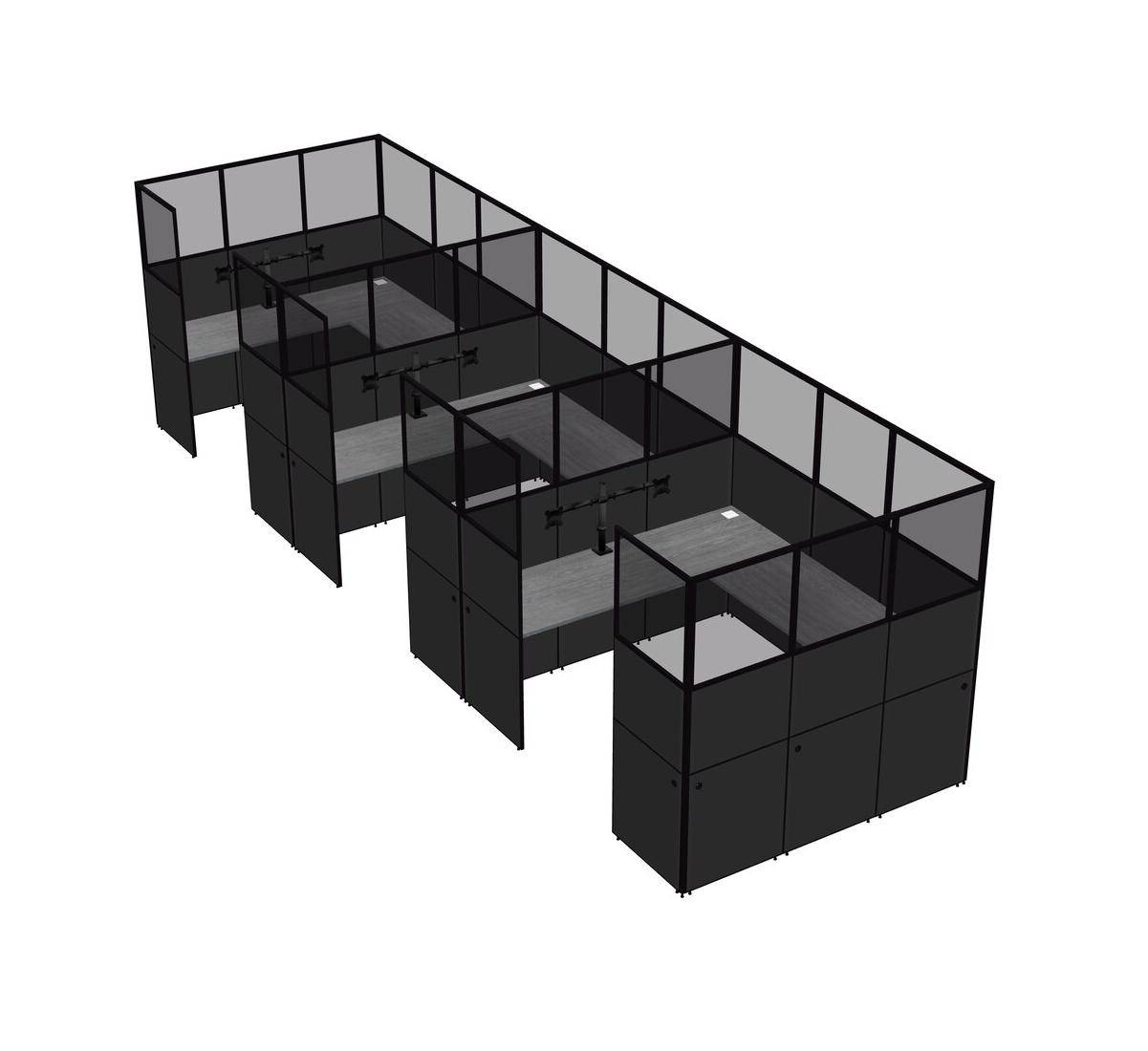 Grey U-shaped Panel System For 3 Person + Monitor Arm (double Arms) For 3 User(s)